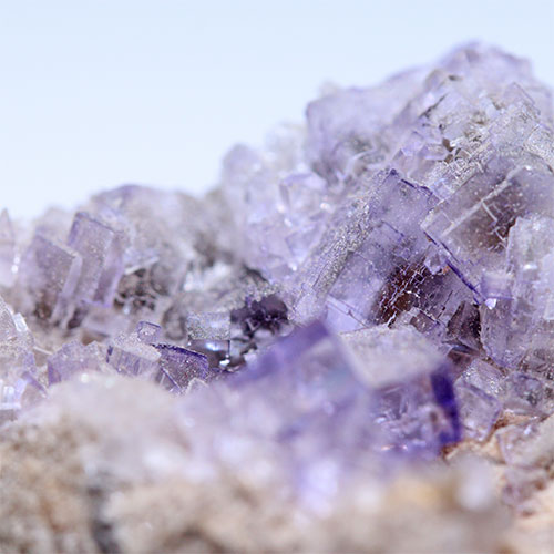 メキシコの北側、アメリカ、テキサス州との国境に程近いムスキスは、低温下で成長するフローライトの産地で有名です。立方体に向かって細かい結晶が階段や都市のような、段差で出来た形に成長します。