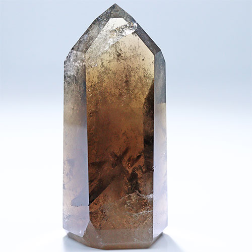 〔D451-1〕高品質 ブラジル ミナスジェライス コリント スモーキーシトリン ポイント Citrine 黄水晶 六角柱 置物【メール便不可】