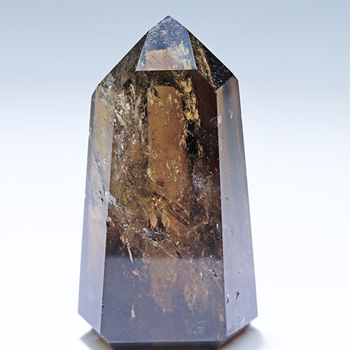 〔D451-15〕高品質 ブラジル ミナスジェライス コリント スモーキーシトリン ポイント Citrine 黄水晶 六角柱 置物【メール便不可】