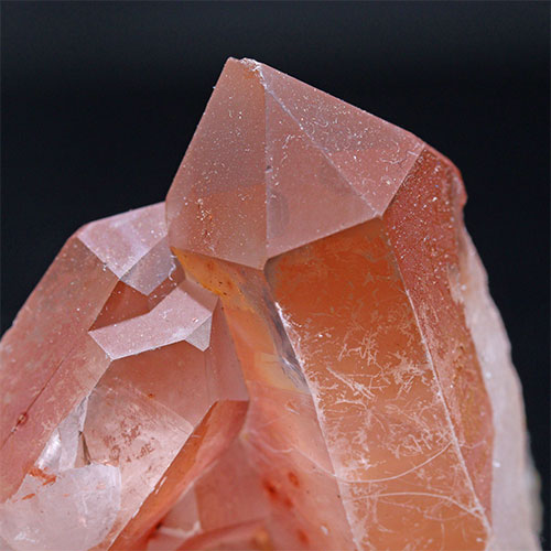 タンジェリンクォーツは、表面にヘマタイト(酸化鉄)成分が付着し、それが酸化した水晶です。表明層に取り込まれていたゲーサイトが、美しいオレンジ色を見せていますが中身は透明な水晶です