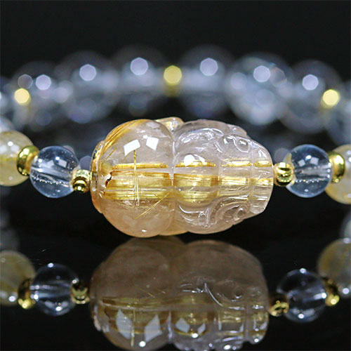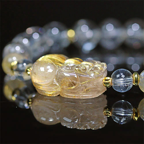〔K2008-2〕ルチルクォーツ&水晶 貔貅 ヒキュウ ブレスレット【FOREST 天然石 パワーストーン】