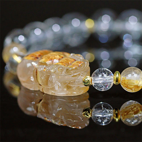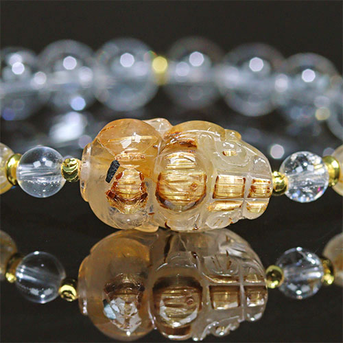 〔K2008-3〕ルチルクォーツ&水晶 貔貅 ヒキュウ ブレスレット【FOREST 天然石 パワーストーン】
