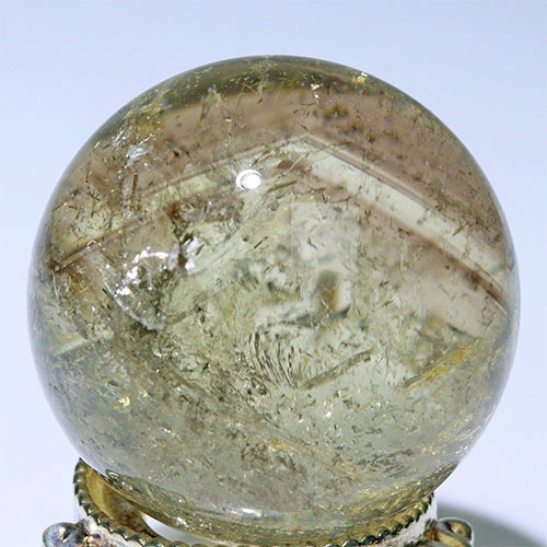 〔D453-4〕約41mm シトリン 虹入り ファントム ゼウスクォーツ スフィア Citrine 丸玉 黄水晶 置物 風水