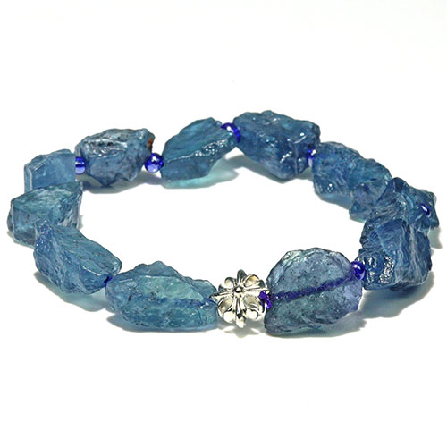 〔K2023〕濃い ディープアクアマリン 原石ブレスレット【ランダム発送】