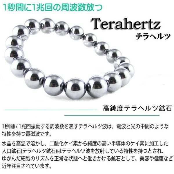 【 天然石 パワーストーン アクセサリー ファッション 雑貨 】【テラヘルツ鉱石-Terahertz ore-】 1秒間に約1兆回振動するテラヘルツ波は、電波と光の中間的な特性があります。最近の研究によりテラヘルツの効果が証明されてきました。テラヘルツ波は紙や木材、プラスチックなど様々な物質を透過する事ができ、医療分野での応用が期待されています。また、テラヘルツ波は、遠赤外線と波長が重なり、自己発熱の効果もあるといわれています。