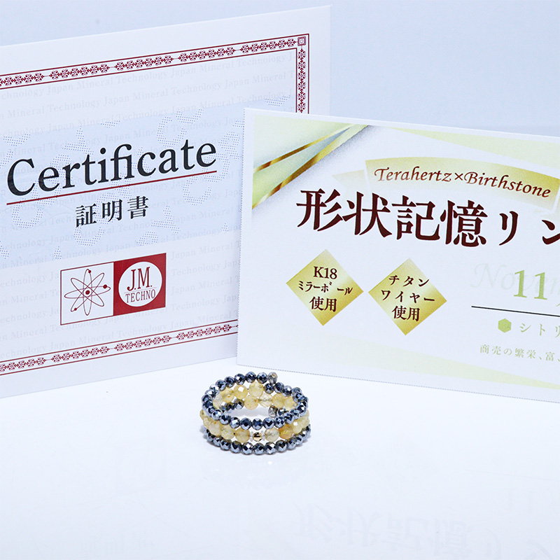 テラヘルツ鉱石と誕生石を組み合わせた、エレガントな形状記憶リングです。