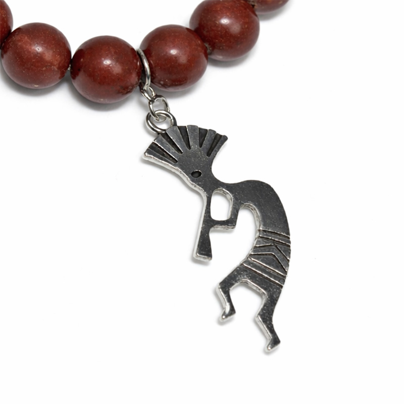 セドナの赤い大地を思わせる、深みのある赤褐色が印象的なセドナストーンに、ココペリモチーフを合わせたデザインブレスレットです。大地のぬくもりを感じる落ち着いた色合いは、ひと目で心を惹きつける存在感があり、ありふれた天然石ブレスレットとはひと味違う特別感を演出してくれます。セドナはアリゾナ州を代表する“レッドロック”の地として知られ、その景観をつくる赤い岩は鉄分による赤色を帯びた地層で、土地そのものに強い個性があります。そうしたセドナのイメージを宿した石は、土地の物語を感じさせる魅力と希少な雰囲気をあわせ持つ一本です。