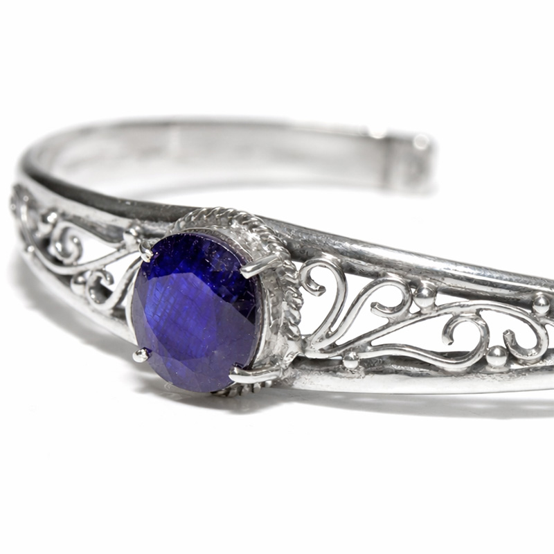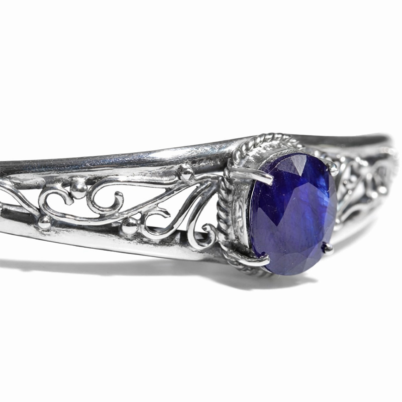 深く美しいブルーが印象的な、タイ産サファイアをあしらったSV925バングルです。
