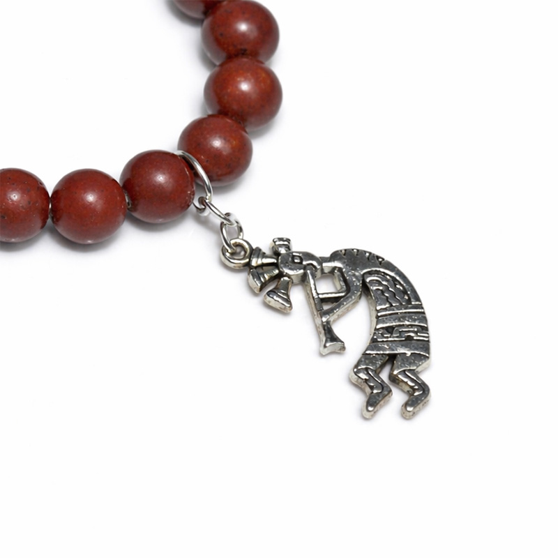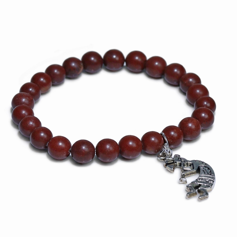 セドナの赤い大地を思わせる、深みのある赤褐色が印象的なセドナストーンに、ココペリモチーフを合わせたデザインブレスレットです。大地のぬくもりを感じる落ち着いた色合いは、ひと目で心を惹きつける存在感があり、ありふれた天然石ブレスレットとはひと味違う特別感を演出してくれます。セドナはアリゾナ州を代表する“レッドロック”の地として知られ、その景観をつくる赤い岩は鉄分による赤色を帯びた地層で、土地そのものに強い個性があります。そうしたセドナのイメージを宿した石は、土地の物語を感じさせる魅力と希少な雰囲気をあわせ持つ一本です