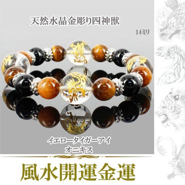 水晶金彫り四神 イエロータイガ- オニキス 14mm(b1-57SK14YO)