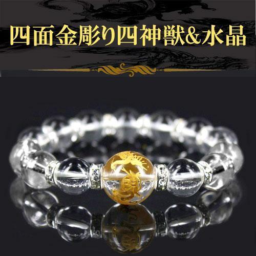 四面水晶金彫り 四神 デザインブレスレット b3-85-1p
