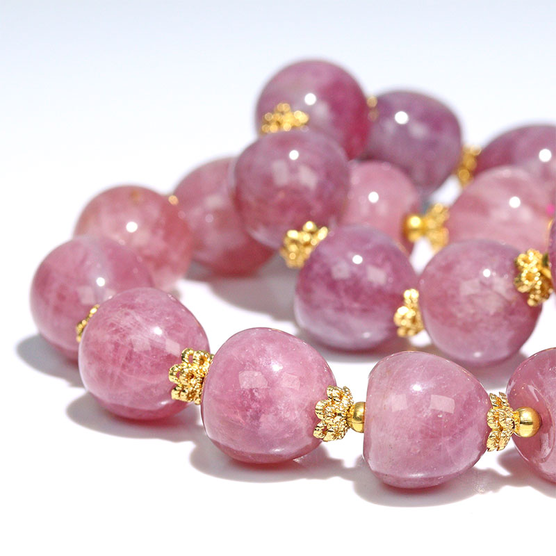 〔K2039〕約13-14mm 発色良い イチゴ型 パープルローズクォーツ ブレスレット マダガスカル産