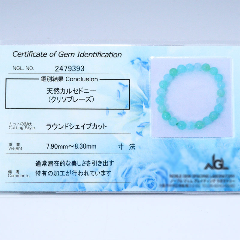 〔K2042-1〕高品質 約8mm クリソプレーズ Chrysoprase 緑玉髄 ブレスレット【鑑別書付き】