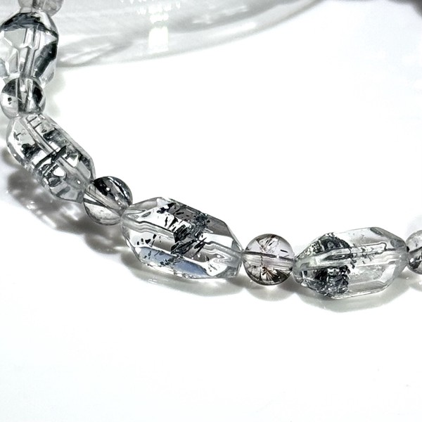 希少鉱物スティブナイトが水晶にインクルージョンされた “レアストーン” スティブナイトインクォーツブレスレットでございます。
