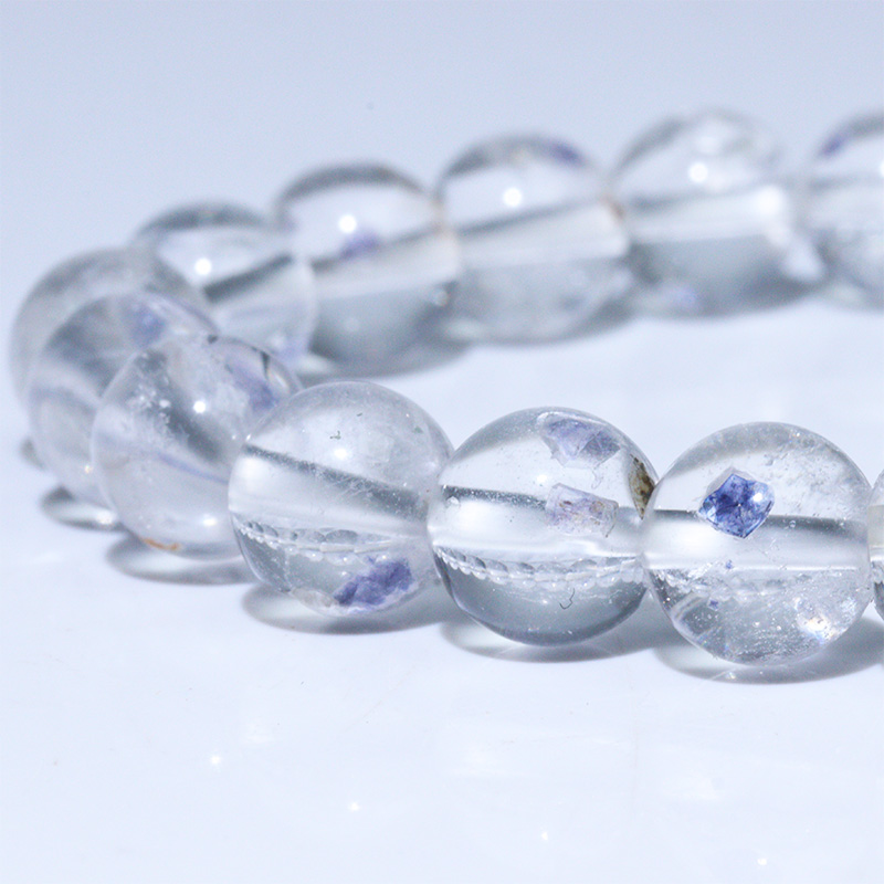 澄みきったクォーツ(水晶)の中に、やわらかな色彩のフローライトを内包した希少な天然石「フローライト イン クォーツ」。自然が創り出した偶然の芸術ともいえる、美しく神秘的な存在です。
