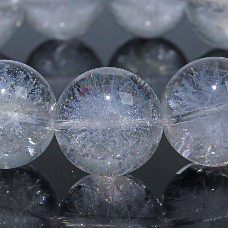 透明度の高い天然水晶に、特殊な加工を施すことで、内部に放射状の白い結晶模様を生み出しています