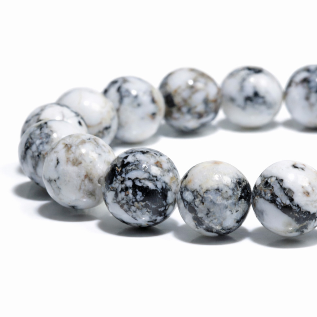 白を基調とした石肌に、ブラックやグレーのマトリックスが入る独特の模様が特徴で、まるで雪景色のような美しいコントラストが魅力の天然石です。