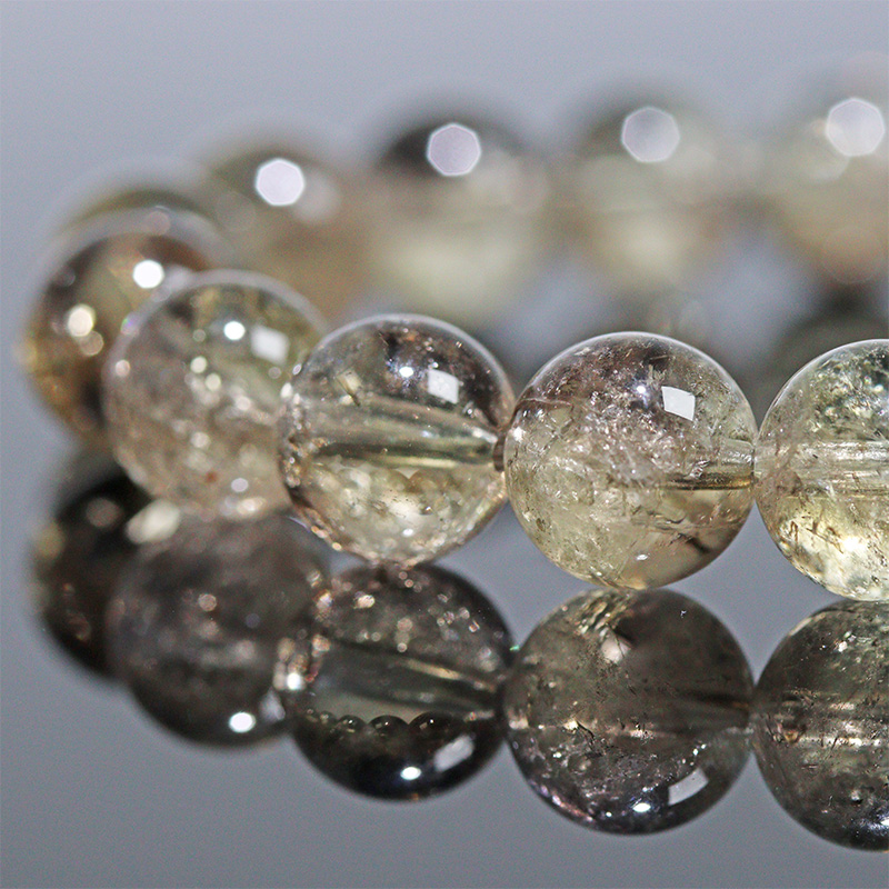 このブレスレット同士をそっと触れ合わせると、シャラシャラと澄み渡る高音の音色が響きます。その音はとても軽やかで透明感があり、まるで水晶が奏でる小さな鈴のような美しい響きです。