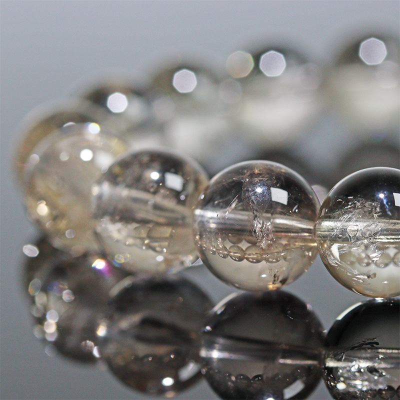 このブレスレット同士をそっと触れ合わせると、シャラシャラと澄み渡る高音の音色が響きます。その音はとても軽やかで透明感があり、まるで水晶が奏でる小さな鈴のような美しい響きです。