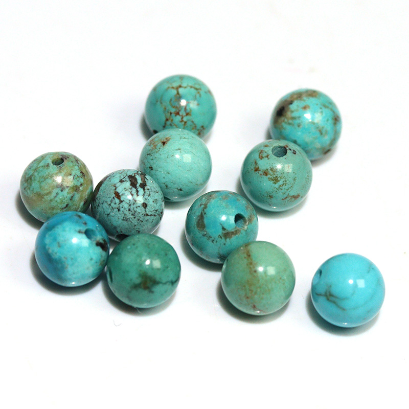 カンピトス ターコイズの際立った特徴の 1 つは、その魅惑的な青色です。眠れる森の美女の強烈な青の魅惑的な色合いとよく比較されるカンピトス ターコイズは、その鮮やかで鮮やかな色合いで知られています。ターコイズらしい爽やかなブルーの色に・・・ところどころ黄鉄鉱の銀色に輝くパイライトやクリスタルの結晶が感じられたり、茶褐色やブラックのウェブが感じられたり・・・・ターコイズのひと粒ひと粒に表情があって、とても自然でナチュラルな印象です。