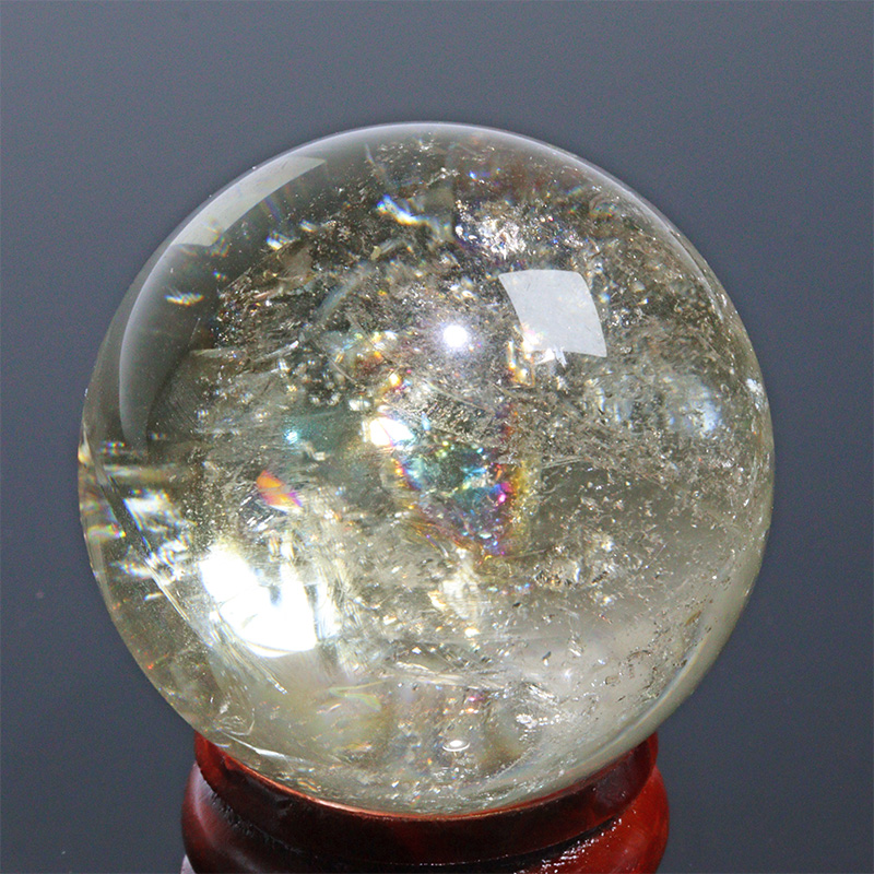 〔D471-7〕約35mm シトリン 虹入り スフィア Citrine 丸玉  黄水晶 置物 風水【メール便不可】