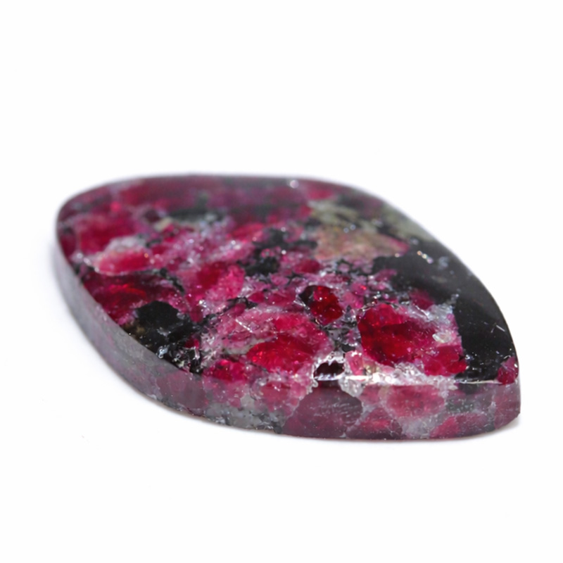 鮮やかな深紅から赤紫を思わせる美しい発色が印象的な、ロシア産ユーディアライトのルースです。