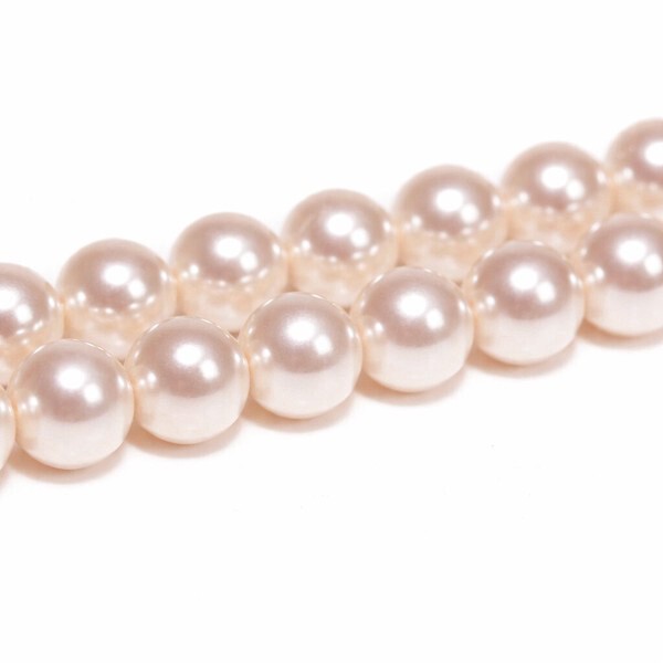 〔E1-106-8m〕8mm天然 シェルパール 連材 クリームピンク 貝パール ビーズ 【FOREST 天然石 パワーストーン】
