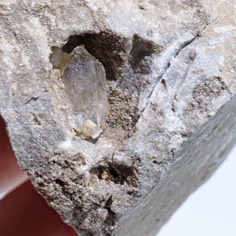ハーキマーダイヤモンドは、ドロマイト(苦灰岩)という硬い岩石の母岩の中にできた空洞部分に、柱面の一部分が接触して成長しています。その形成は、4億5000年から5億年前と言われています。