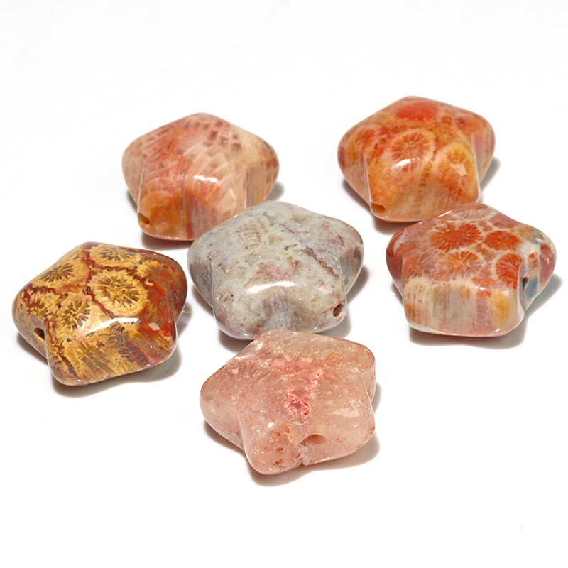〔Z149-1〕フォッシルコーラル 星形 ビーズ 6個 粒売りFossil coral【FOREST 天然石 パワーストーン】