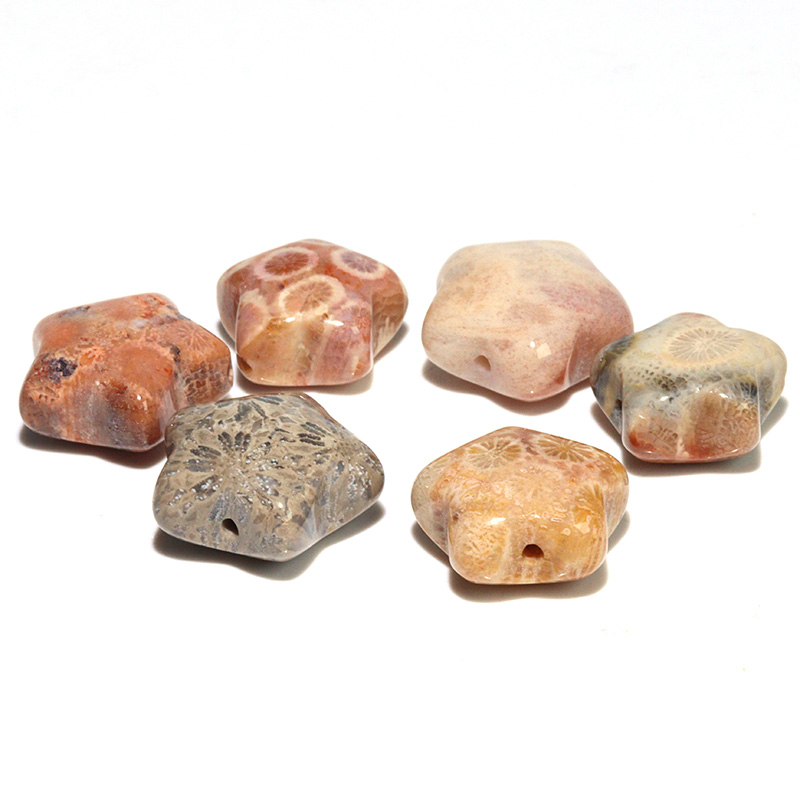 〔Z149-4〕フォッシルコーラル 星形 ビーズ 6個 粒売りFossil coral【FOREST 天然石 パワーストーン】