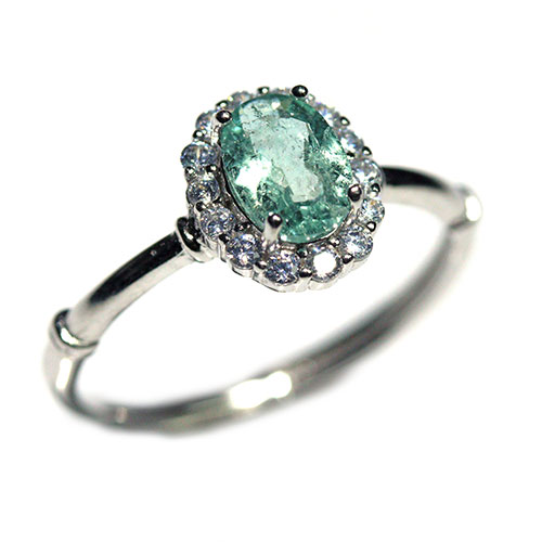 透明感のあるブルートルマリンを中心に、周囲には繊細に輝くストーンをあしらい、上品さの中に可愛らしさも感じられるデザインに仕上がっています。