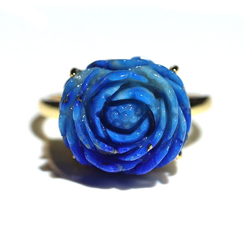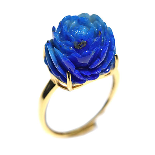 深く鮮やかなブルーが美しいラピスラズリを、華やかな薔薇モチーフに丁寧に仕上げたフリーサイズリングです。