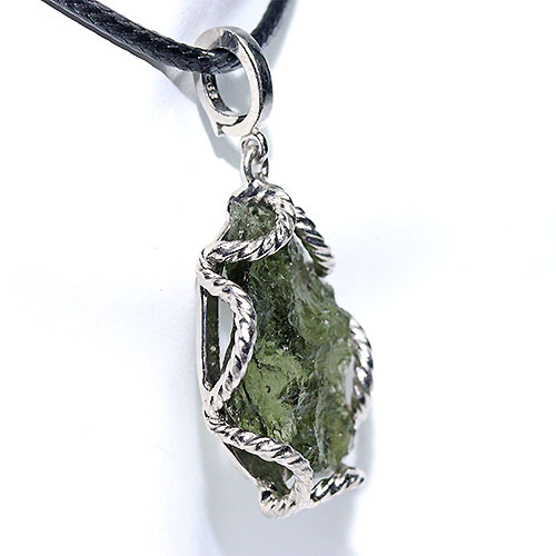 〔J361-2〕チェコ産 天然モルダバイト sv925 ペンダントトップ Moldavite モルダウ石