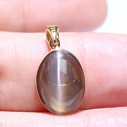 一条の光が差し込まれた際に、控えめだった石が怪しく艶めかしいキャッツアイのラインが出現するのはとても美しく、ギャップある変化は見るものを魅了します。