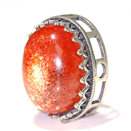 光が当たると、内側から赤やオレンジベースの神秘的なキラキラ輝きが溢れ出てきます。