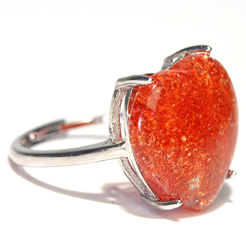〔R467-15〕高品質 発色良い サンストーン sv925 リング 指輪 フリーサイズ Sun stone 日長石