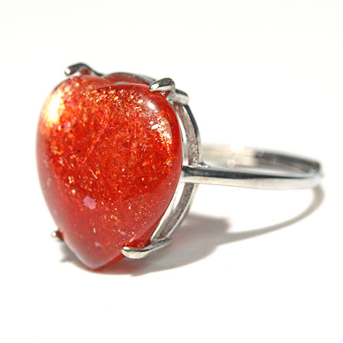 光が当たると、内側から赤やオレンジベースの神秘的なキラキラ輝きが溢れ出てきます。