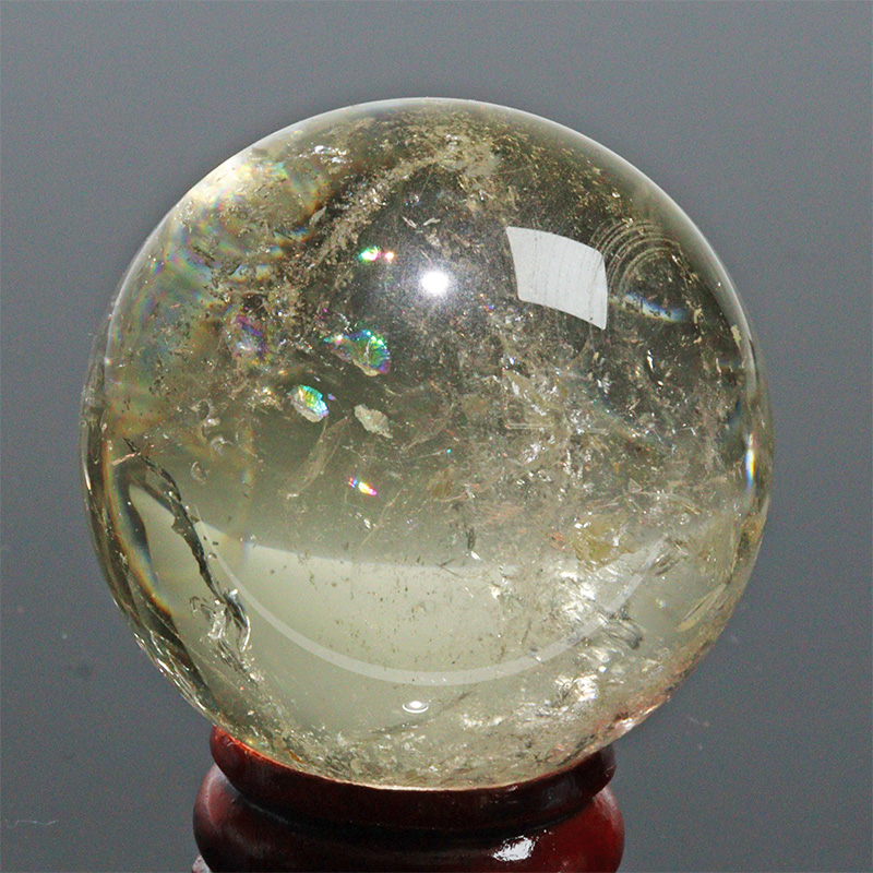 〔D453-8〕約39mm シトリン 虹入り スフィア Citrine 丸玉 黄水晶 置物 風水【メール便不可】