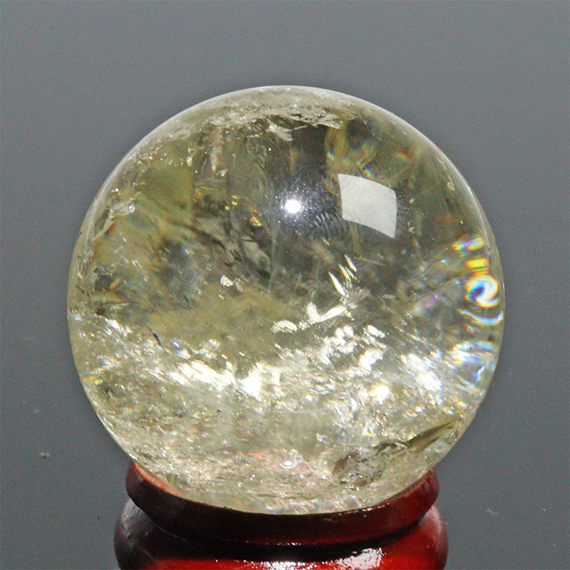 〔D453-17〕約32mm シトリン 虹入り スフィア Citrine 丸玉 黄水晶 置物 風水【メール便不可】