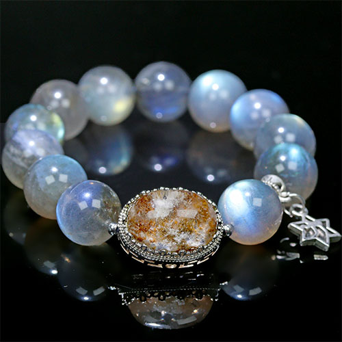 〔K2011〕発色良い マダガスカル産 ラブラドライト ガーデンクォーツ Labradorite デザインブレスレット