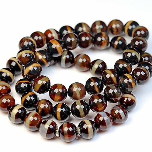 〔K2019-1〕約10mm 天然一線薬師天珠瑪瑙 ブレスレット ブラックブラウンカラー【FOREST 天然石 パワーストーン】