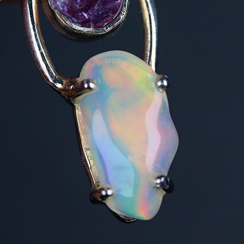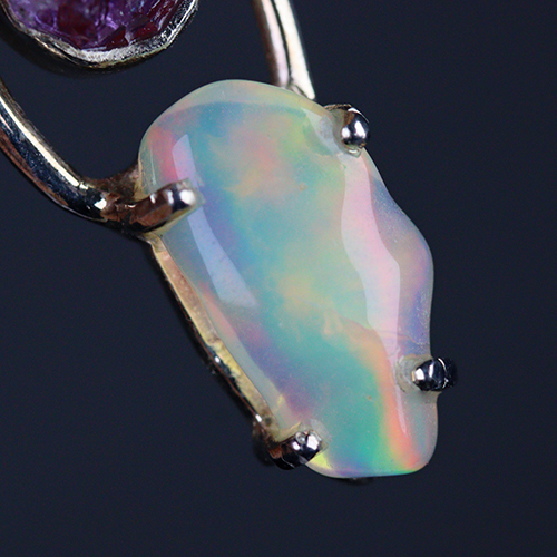 見る角度によって、さまざまな表情を見せる宝石質のエチオピアンオパールとシトリンを合わせた、とても上品なペンダントトップ。