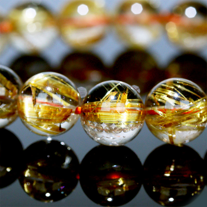 密集したゴールドルチルが光を反射する。 史上最強のルチルです。輝き共に女王様の風格で、このグレードでは、最後の名品となるでしょう。仕事運・勝負運・金運を強力な力で引き寄せます、危機を回避する力、問題を克服する力を高め、異性のハートをも射止めると言われています。 日光などの強い光に当てると、ルチルが輝きます。