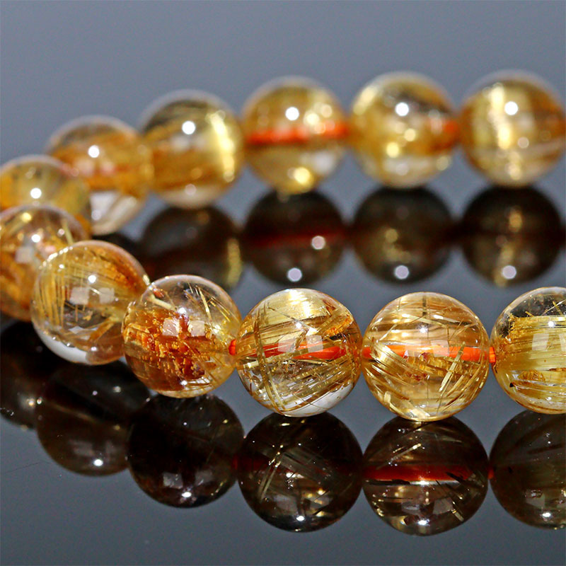〔K2034-5〕約10mm 最高品質 キャッツアイタイチンルチルクォーツ ブレスレット Titin Rutilequartz