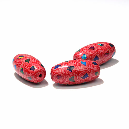一つ一つ多段階の工程を経て制作され、オパール宝石の遊色効果と大漆の天然の光沢が互を引き立てあっています。