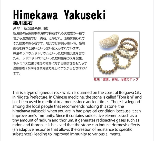 新潟県の糸魚川市の海岸で採石される火成岩の一種で、昔から漢方薬では「虎石」と呼ばれ、治療に使われてきた歴史のある石です。