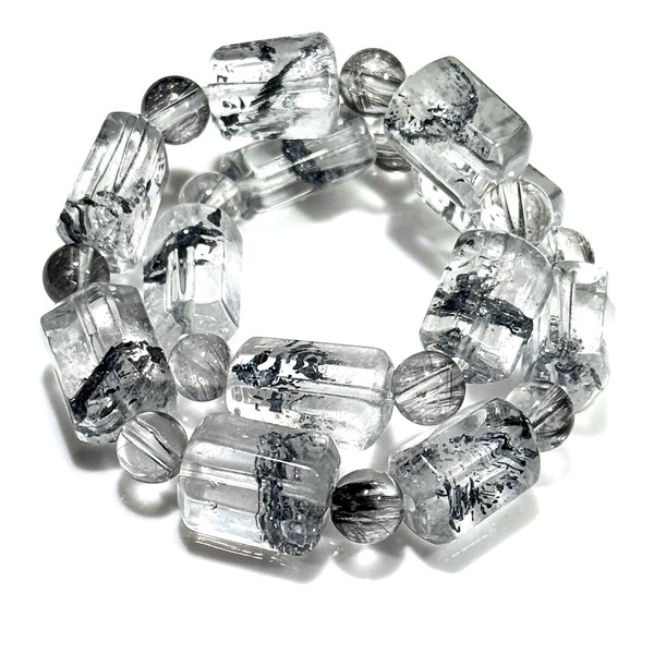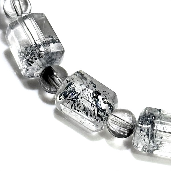 希少鉱物スティブナイトが水晶にインクルージョンされた “レアストーン” スティブナイトインクォーツブレスレットでございます。