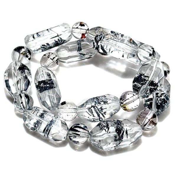 希少鉱物スティブナイトが水晶にインクルージョンされた “レアストーン” スティブナイトインクォーツブレスレットでございます。