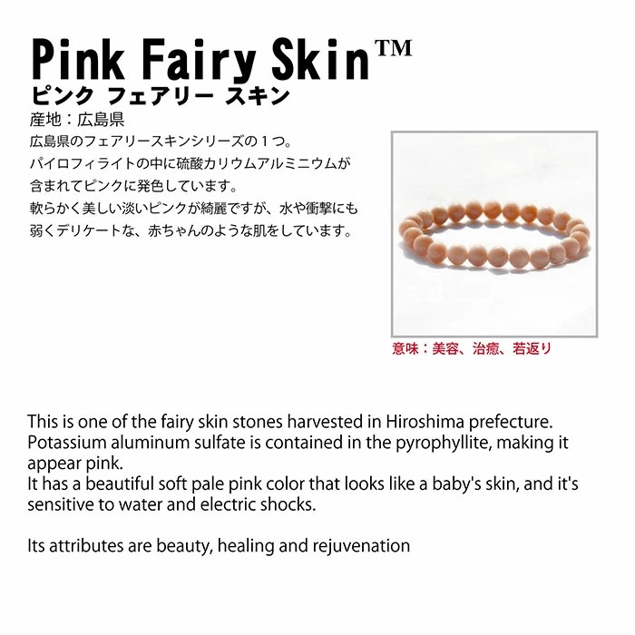 ピンクフェアリースキンは、淡く透けるようなピンク色と柔らかな質感が特徴の天然石で、その姿から「妖精の肌(フェアリースキン)」と呼ばれています。