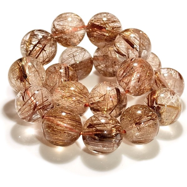 透明のクォーツの中に、鮮やかなオレンジ~赤茶色の針状鉱物(主に鉄分を含んだチタン)が入った、希少性の高いパワーストーンです。